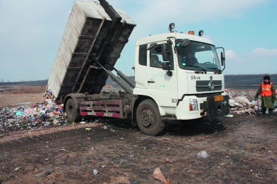 5、清运车车厢装满后,返回到垃圾中转站卸压缩垃圾。